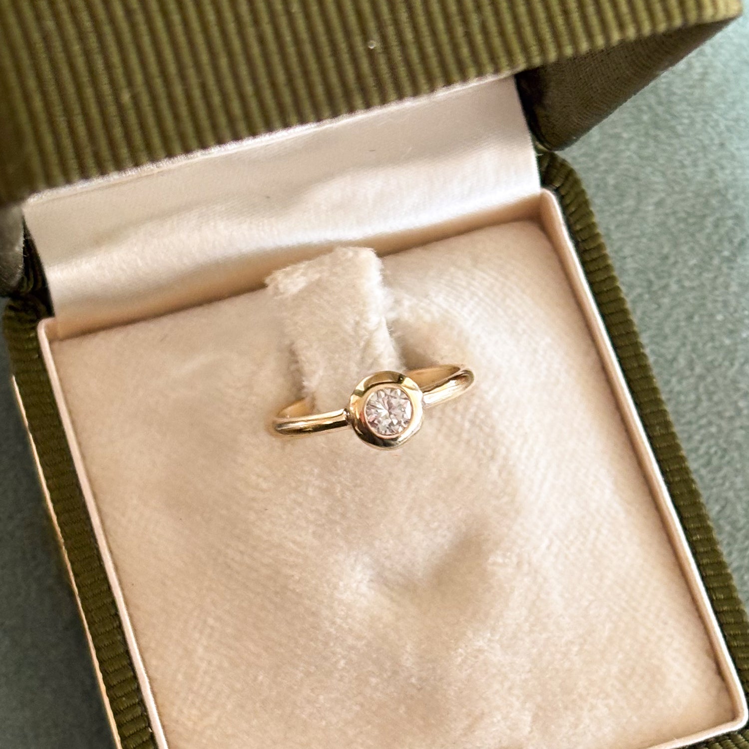 Clean girl style meets utility. Custom made in 14kyg with an heirloom diamond. Designed to highlight the stone with a low maintenance bezel setting.