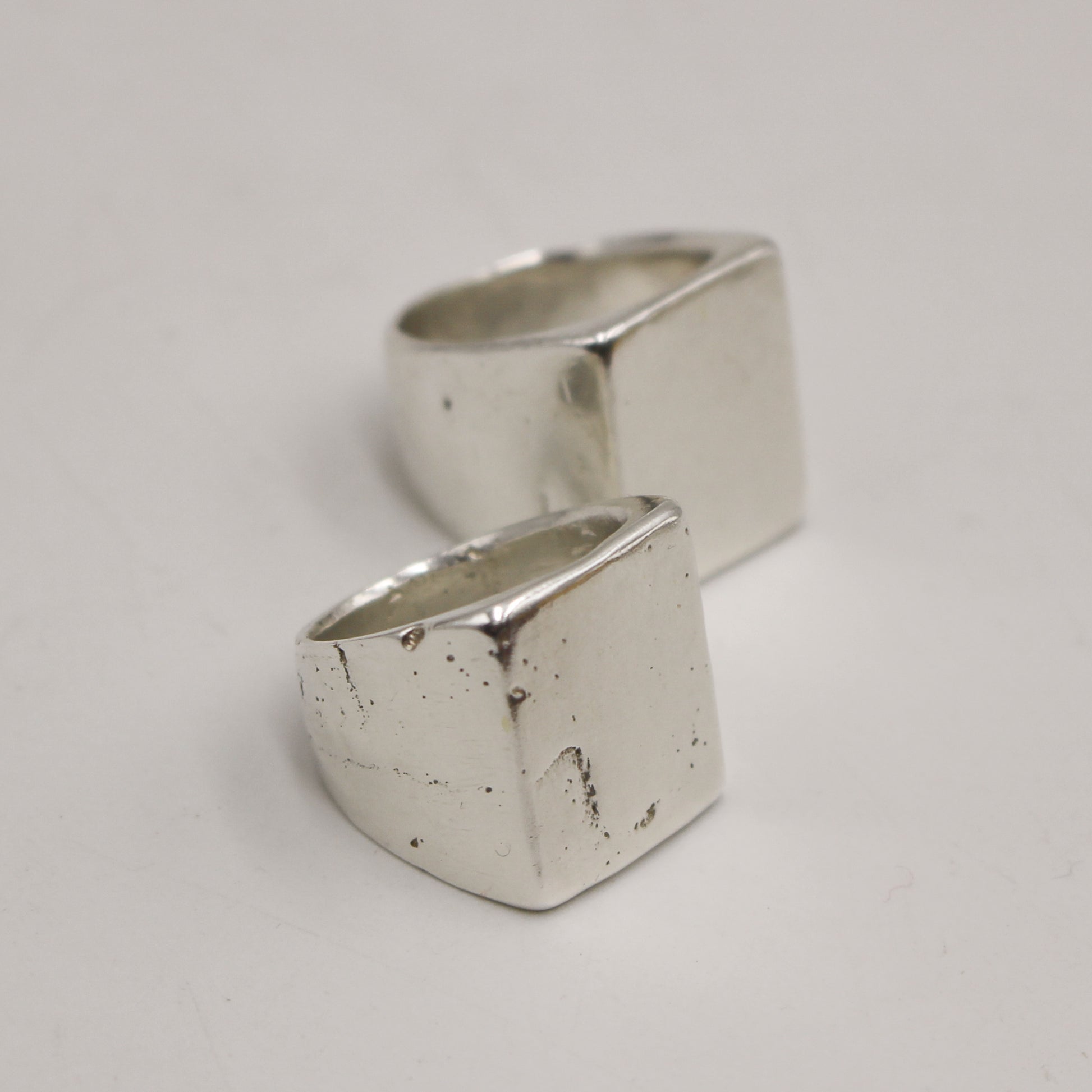 A bold, chunky signet, hand-carved and cast in sterling silver. Each ring is made to order and will have its own unique distress and characteristics.