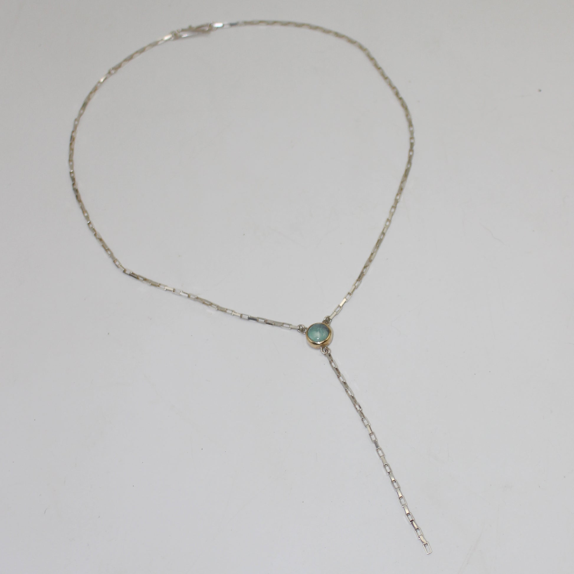 Incredible and moody New Lander turquoise set in a solid 14k yellow gold bezel with a sterling silver chain. Chain is adjustable at 15” or 16” around the neck. The bottom chain is 3” and can be shortened if you’d like - just leave a note at checkout.