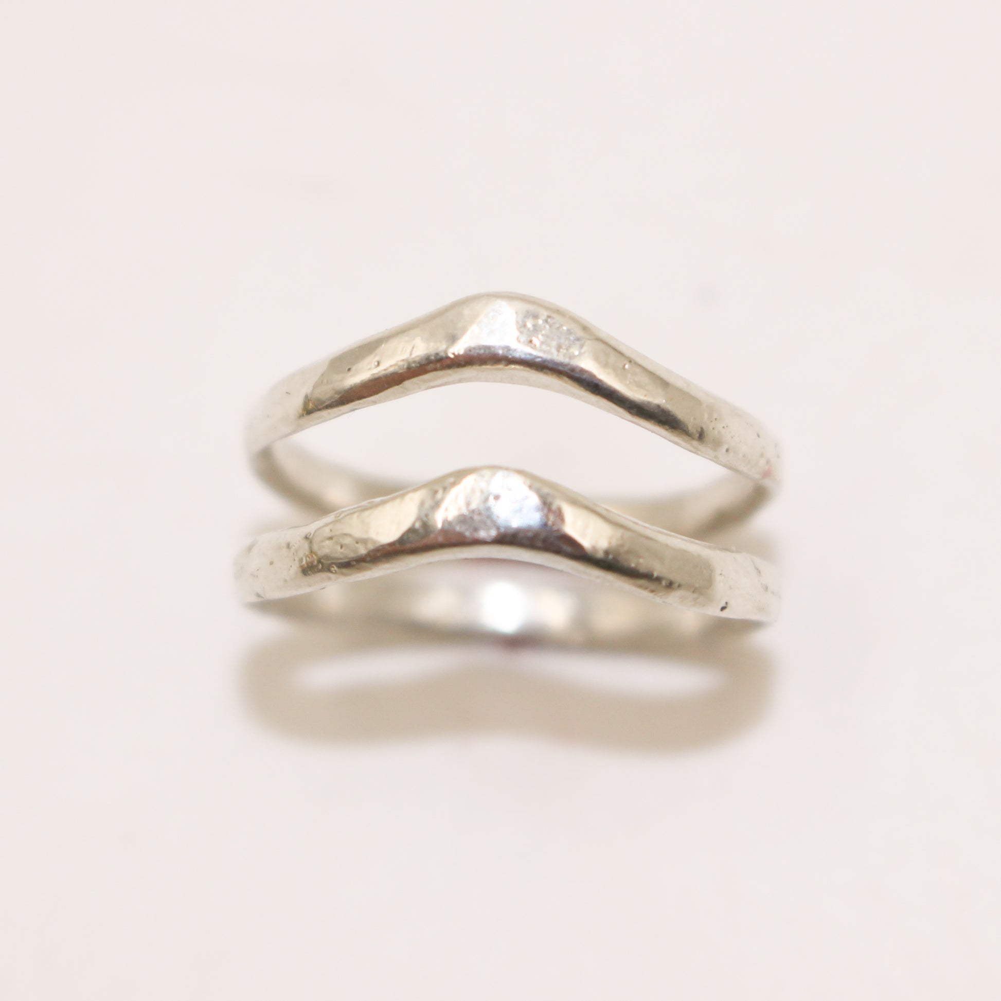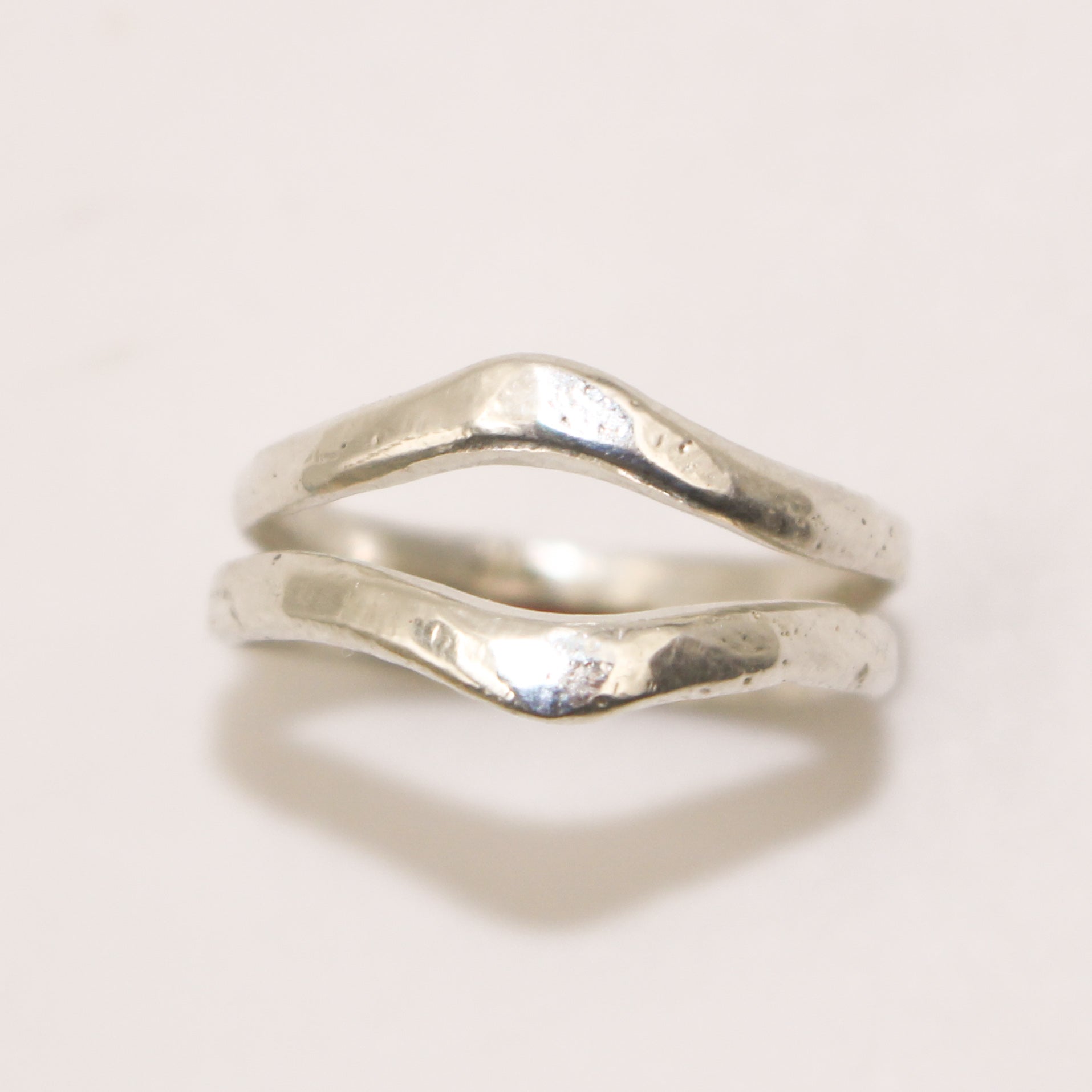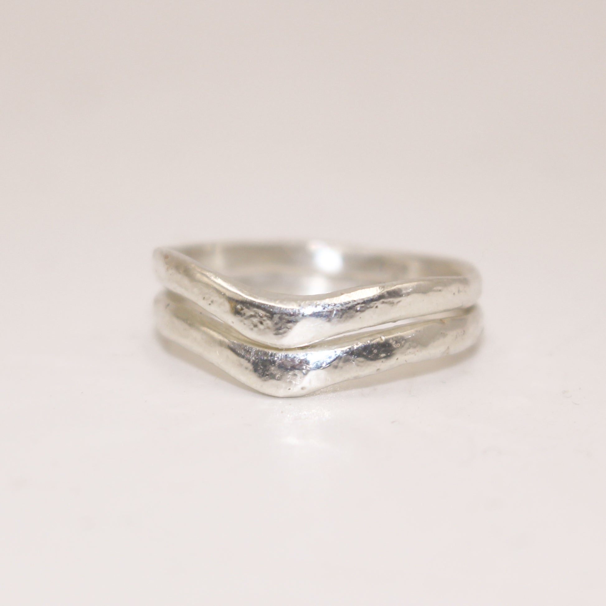 Hand-carved, sandcast sterling silver band with a gentle curve and organic texture.